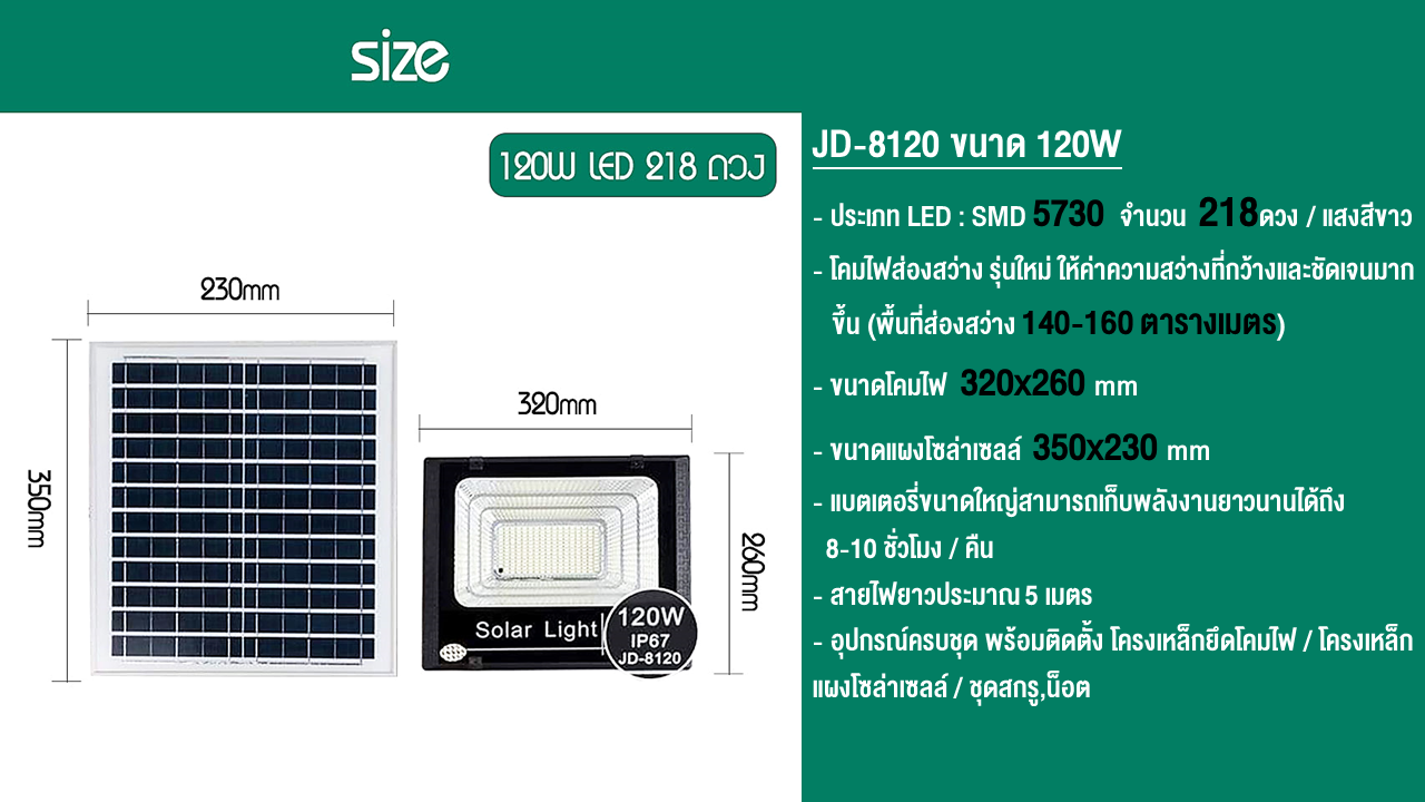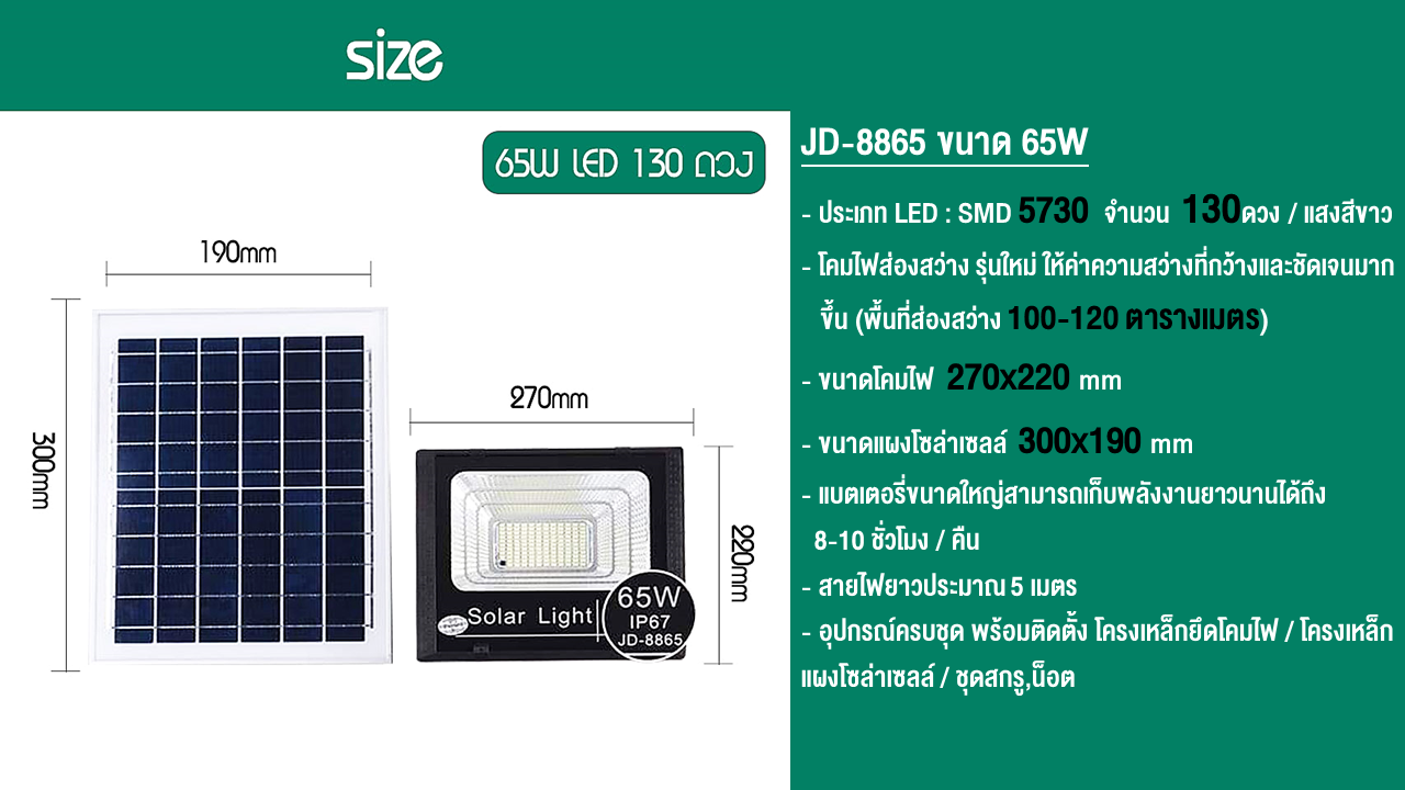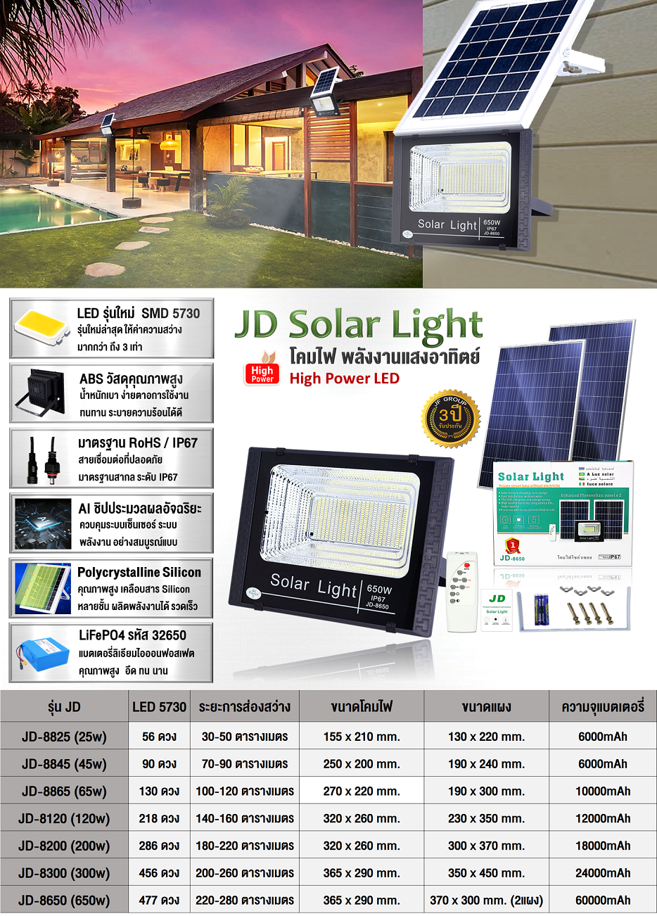 • สินค้ารับประกัน 3 ปี (รับประกันแผงโซล่าเซลล์ 3 ปี / รับประกันไฟ LED 1 ปี)