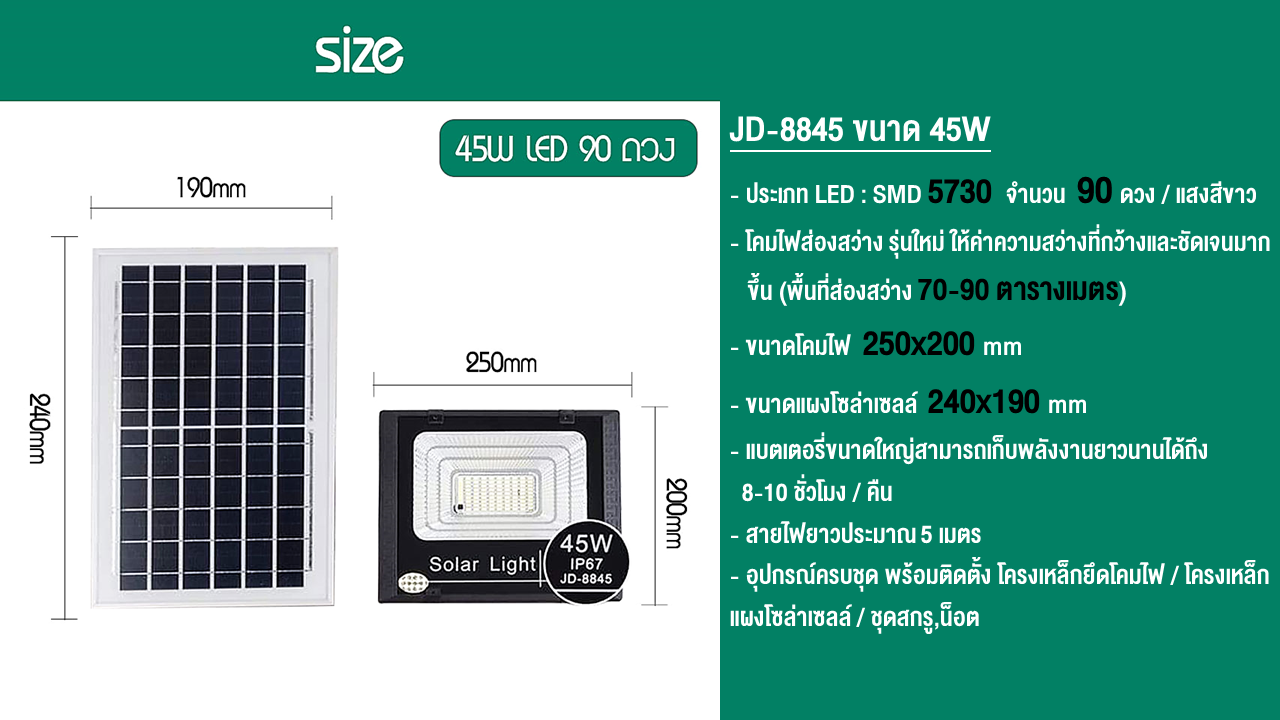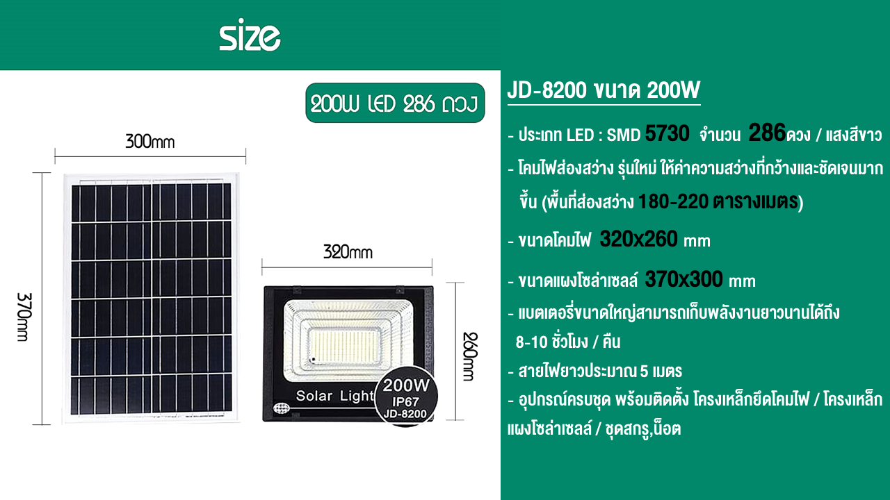 ไฟโซล่าเซล jd แท้ solar light ไฟโซล่าเซล ไฟ LED ประหยัดพลังงาน แสงสี ขาว โคมไฟพลังงานแสงอาทิตย์ เหมาะกับการใช้งานทุกพื้นที่ โคมไฟภายนอกอาคาร ไฟสนามโซล่าเซล ไฟแต่งสวน ไฟถนน ไฟประดับ ไฟ โซล่าเซลล์ Others ไฟสปอร์ตไลท์ ไฟโซล่าเซลล์ ไฟโซล่าเซล