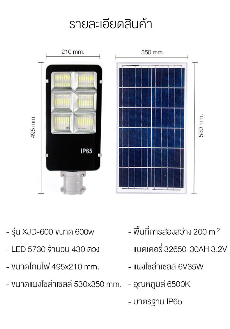 1.โคมไฟ พลังงานแสงอาทิตย์LED 5730 รุ่นXJD-600 ขนาด600W กระจายแสงได้กว้างอายุการใช้งานยาวนาน