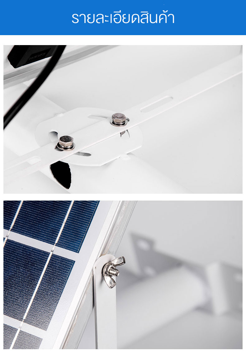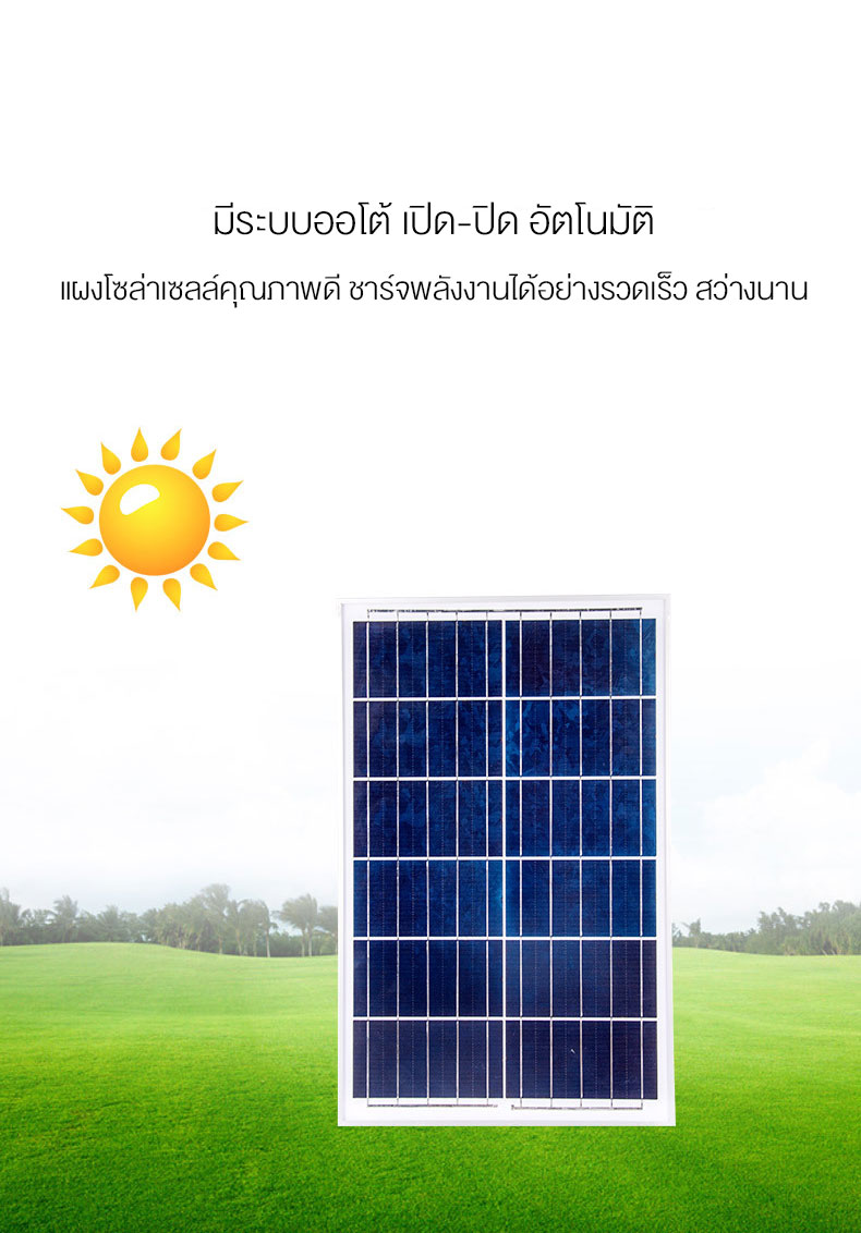 - ขนาดแผงโซล่าเซลล์ 530 x 350 mm. 6V35W