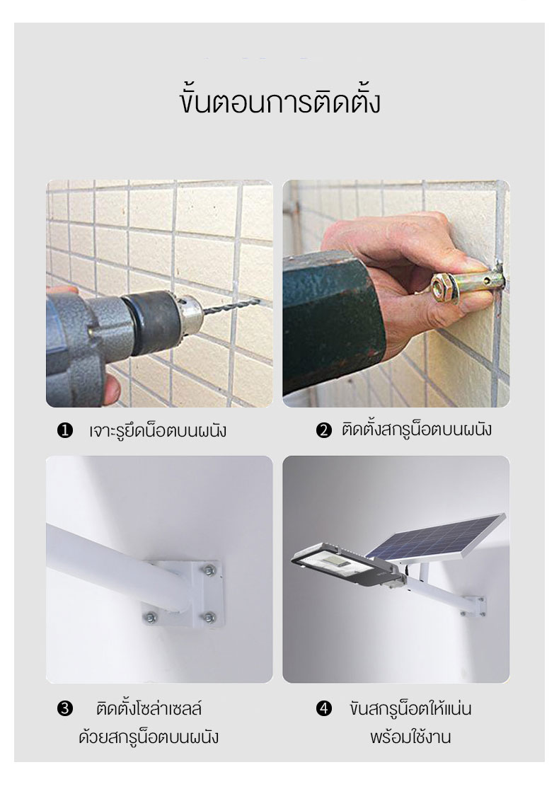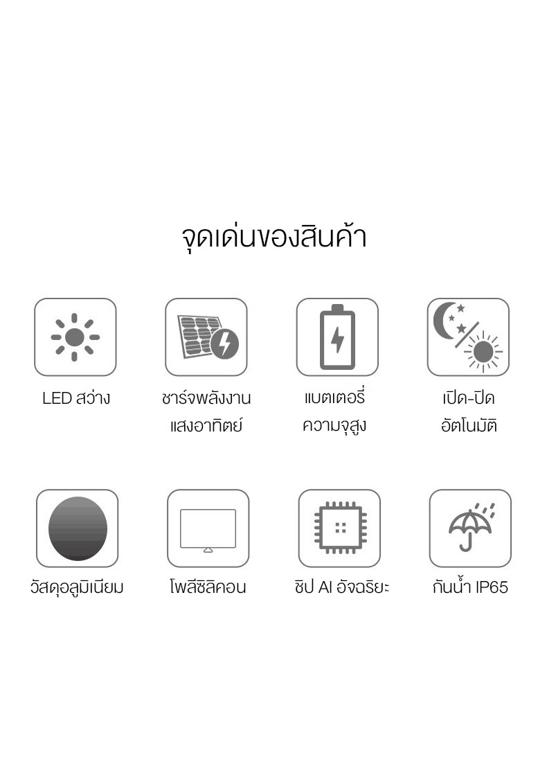 - สินค้ารับประกัน 1 ปี ( รับประกันแผงโซล่าเซลล์ 1 ปี / รับประกันไฟ LED 1 ปี )