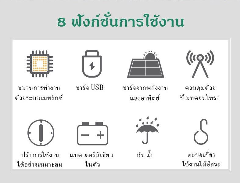1.โคมไฟ : การออกแบบรูปทรงที่มีความโดนเด่นและทันสมัยใหม่2.LED : รุ่นใหม่ SMD 2835 เพิ่มจำนวน LED มากขึ้น3.กรอบสะท้อนแสง : การออกแบบเป็นรูปทรงเกล็ดปลาช่วยให้ระบายความร้อนพร้อมทั้งสามารถกระจายแสงกว้างและชัดเจนมากขึ้น รับประกันคุณภาพสินค้า และ ความพอใจเรายินดีคืนเงินเต็มจำนวน1.สินค้าแท้ 100% รับประกันศูนย์ไทย 1 ปี2.รับประกันเปลี่ยนสินค้าใหม่ ภายใน 7 วัน (หากสินค้าได้รับการเสียหายหรือชำรุดสามารถแจ้งเพื่อเปลี่ยนสินค้าใหม่ได้ ภายใน 7 วัน นับจากวันที่ลูกค้าได้รับสินค้า)ไฟตุ้มโซล่าเซลล์ JD แท้ solar light ไฟโซล่าเซลล์ ไฟ LED ประหยัดพลังงาน แสงสีขาว โคมไฟพลังงานแสงอาทิตย์ เหมาะกับการใช้งานทุกพื้นที่ โคมไฟภายนอกอาคาร ไฟสนามโซล่าเซลล์ ไฟแต่งสวน ไฟถนน ไฟประดับ ไฟ โซล่าเซลล์ Others ไฟสปอร์ตไลท์ ไฟโซล่าเซลล์ ไฟโซล่าเซลล์ JD solar solar cell โคมไฟโซล่าเซลล์